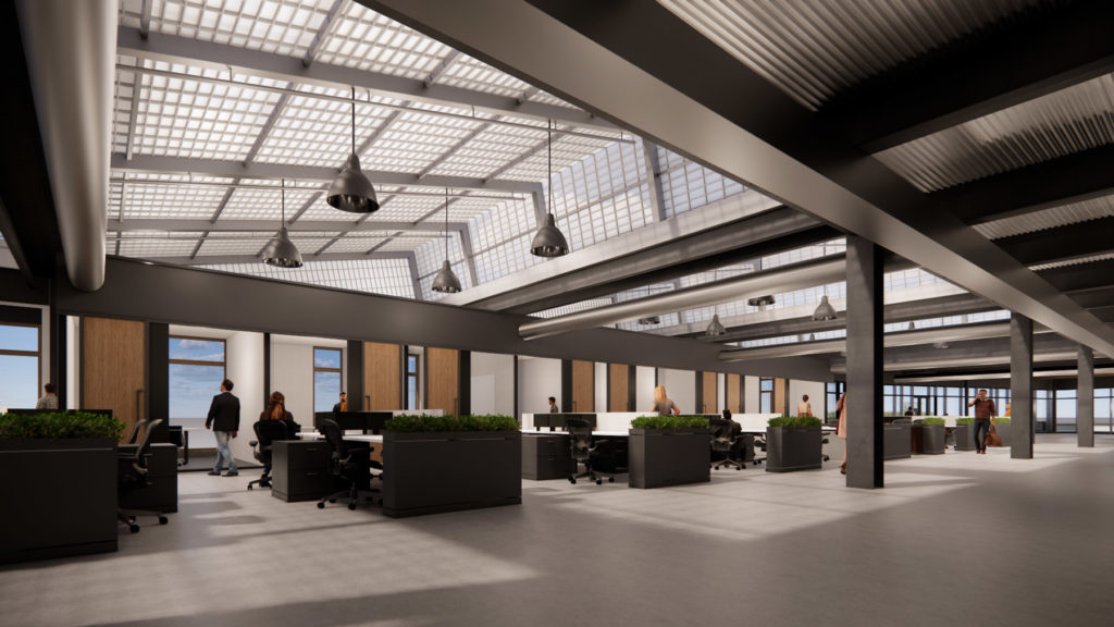 A transit-oriented development in the River North neighborhood of Denver, CO, featuring a Class A five-story speculative office building